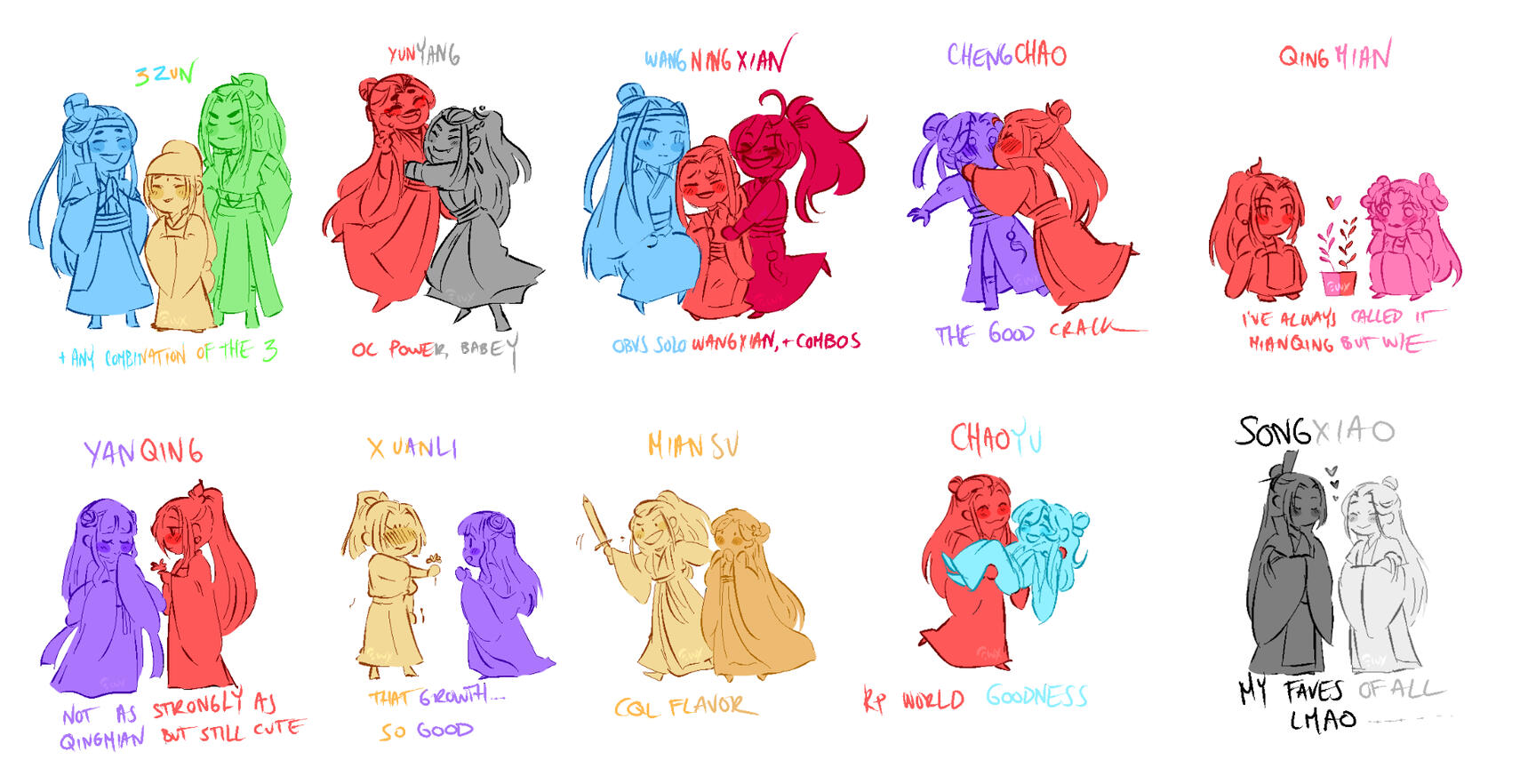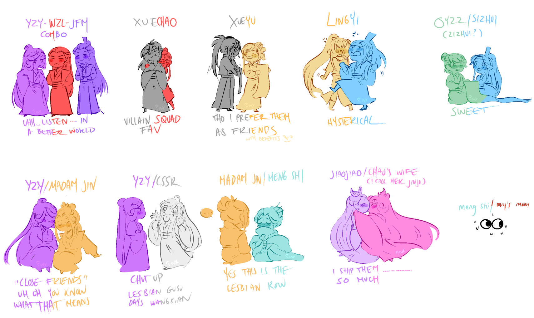weiwifis/wifiwuxians' ships. for mdzs, though i may include more later